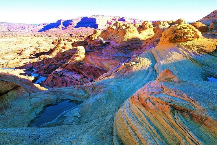 下午:乘车前往五彩滩.“被誉为天下第一滩”、“新疆最美雅丹地貌”——【五彩滩】(游览时间约40分钟),五彩滩位于新疆北端阿勒泰地区布尔津县境内,地处我国注入北冰洋的额尔齐斯河北岸的一、二级阶地上,海拔480米,往哈巴河县方向,距布尔津县城24公里,也是前往喀纳斯湖景区的必经之路。2018年4月13日,入围“神奇西北100景”。