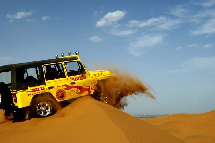 途中车览【阿拉善英雄会】标志性景观大门。抵达沙漠 接待点,换乘沙漠冲浪车深入腾格里沙漠腹地,