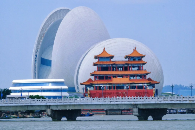 【日月贝大剧院】外观 (30 分钟) 中国唯一建设在海岛上的歌剧院。 由一大一小两组“贝壳”构成 的整体形象。 白天呈现半通透效果, 夜晚像月光一样晶莹剔透。 “珠生于贝, 贝生于海”, 诠释珠海在 中国大陆率先拥抱海洋文明的富有历史文化沉淀的城市精神特质, 必走景点之一。