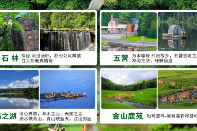 岭南坡林区。每年的夏秋两季,森林公园内植被茂盛、气温宜人,是最佳旅游时节。五营国家森林公园空 气中的负