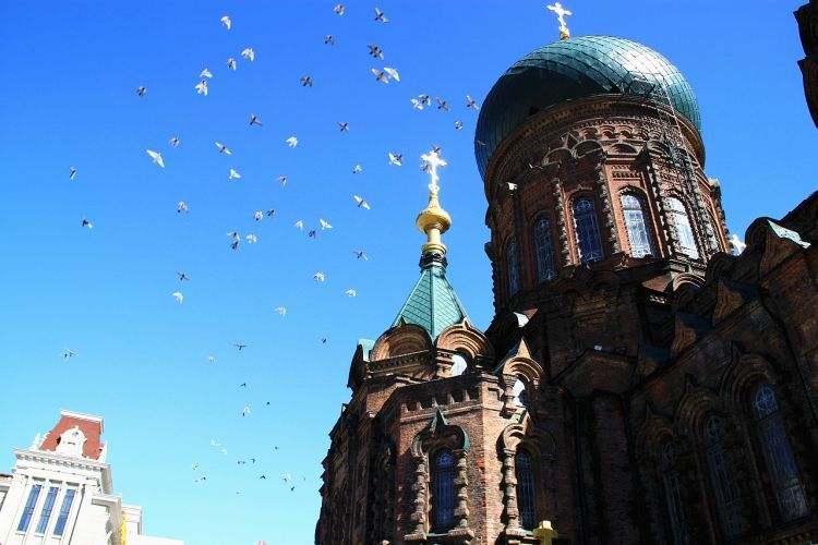 【索菲亚教堂】圣索菲亚教堂始建于1907年3月,最初为沙俄东西伯利亚第四步兵师修建中东铁路时修建的一座随军教堂。它是一座典型的东正教教堂,建筑风格上属于拜占庭式建筑。其设计深受拜占庭建筑艺术的影响,同时也融合了俄罗斯传统建筑的特色
