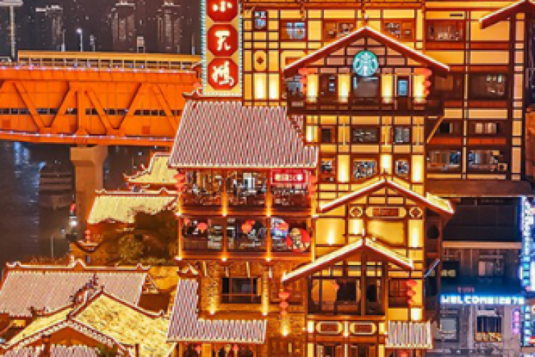 观赏【洪崖洞风貌区】(游览时间不低于40分钟)江景和城市风貌完美融合,以75米高的超常落差,顺崖而上,高低错落、依山而建,成为备受世界瞩目的,独特靓丽的城市名片。坐拥城市旅游景观、商务休闲景观和城市⼈⽂景观于⼀体。 以具巴渝传统建筑特⾊的"吊脚楼"⻛貌为主体,依⼭就势,沿江⽽建,让游客叹为观止(此景点为白天观看,若需观看夜景,散团后可自行回酒店)。