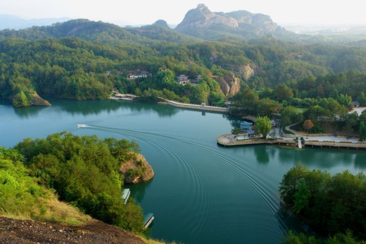 1. 【 连城冠豸山石 龙湖 】 : 览奇峰美誉 “ 北夷南豸 , 丹霞双绝 ” 的连城冠豸山 。 船游石门湖 , 感受水转