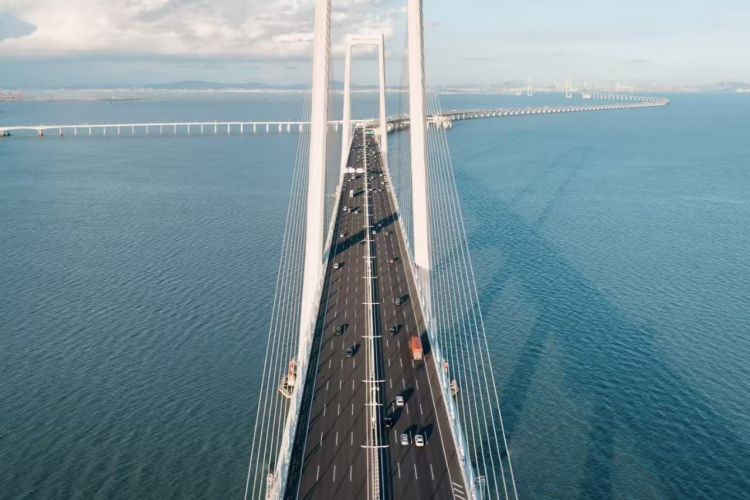 ●乘车赴广东最美的海岛-【南澳岛】车辆行驶在汕头东海岸大道上,眺望东海岸大道毗邻的西太