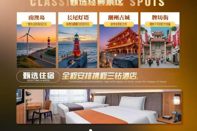 明 、 清为发展的盛期 , 是潮汕滨海的贸易重镇 , 仍保存着100多座古建筑 , 堪称“潮汕古建筑博览 ”前往【西街】 西街是泉州比较早开发的街道和区域 , 早在宋朝 , 它就已经象征了泉州的繁荣 , 它还是泉州市区保存得很完整的古街区, 保留着大量具有历史原貌的建筑 早餐后根据航班时间送团返程 , 结束愉快的潮汕之旅