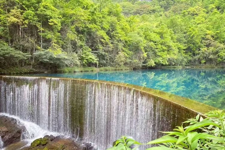 景区里,卧龙潭水平如镜,暗河从崖底奔涌而出,一面虎啸龙吟,一面安静平和,强烈的对比带来新奇的体验。另有层层叠叠68级跌水瀑布、婀娜多姿的拉雅瀑布、翠谷瀑布、天生桥和犹如童话世界的水上森林等多个景区可以游玩探索。