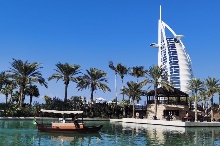 ◆ 早餐后游 览【 伊 朗 小 镇 】(游览约 30 分钟) 感受神秘 中东风情 。【 水 上 的 士 】A bras 跨过 Creek ,游览迪拜海沟 【 咸 水 湾 】 。