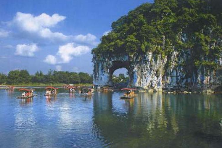 正面最佳角度观赏桂林城徽——5A象山景区(游览约50分钟)观象山有不同的角度,正面观赏象鼻山才是正确的游览方式,面朝象山,象鼻子在左边为正面。其山酷似一头驻足漓江边临流饮水的大象,山体前部的水月洞,弯如满月,穿透山体,清碧的江水从洞中穿鼻而过,洞影倒映江面,构成“水底有明月,水上明月浮”的奇观,只有在这里拍的照片才是正面的。