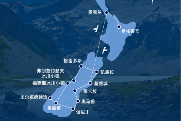 今日亮点:在库克山国家公园徒步,沿湖光山色的步道漫行,感受雪峰、湖水与翠绿山谷交织的诗意景致;在暗夜星空保护区观赏满天星斗,感受纯净夜空带来的宁静与震撼。 早餐后,继续您的行程: 【白石小镇】(约20分钟)漫步奥马鲁白石小镇,仿佛回到了19世纪的新西兰重要港口城市。小镇上的建筑多用坚固的白石建造,街道和建筑保留了典型的维多利亚时代风貌。走在小镇街道上,可以感受到当年港口城市的繁荣气息,同时欣赏复古建筑与现代生活交融的独特景观。 【普卡基湖Lake Pukaki】(约10分钟)普卡基湖位于新西兰坎特伯雷区麦肯奇盆地北部,湖水由冰川作用形成,是一座冰碛堰塞湖(moraine-dammed lake)。湖水因悬浮的冰川岩粉(rock flour) 折射阳光而呈现迷人的蓝色,被誉为“蓝色牛奶湖”,是游客喜爱的摄影和观景胜地。 【库克山国家公园徒步-推荐蓝湖步道】(约40分钟)库克山国家公园由数百座高山组成,公园内有多条冰川和许多湛蓝如宝石般的湖泊,高海拔地区常年积雪覆盖。高耸入云的山峰与冰河共同构成了公园内壮丽的高山景观,是新西兰南阿尔卑斯山脉的重要组成部分。走进库克山国家公园内,推荐蓝湖步道(Blue Lakes)徒步。蓝湖步道:短途步道,往返约30-40分钟,平缓易行。沿途可欣赏清澈湛蓝的高山湖泊,湖水如宝石般倒映周围雪山与森林,尽头的湖景是拍照和静心欣赏自然的理想地点。 游览后,继续乘车前往新西兰南岛的“宁静小镇”---蒂卡坡或周边小镇: 国际暗夜星空保护区(International Dark Sky Reserve)认证的新西兰南岛主要区域是蒂卡坡(Lake Tekapo)及其周边麦肯奇盆地(Mackenzie Basin),包括邻近的小镇特维泽尔(Twizel)。这里远离城市光污染,夜晚的天空清澈透亮,晴朗时可清晰观赏满天繁星、银河,并有机会看到流星。无论是星空摄影、天文观测,还是静心仰望夜空,这一片净土都能带来令人震撼的自然体验,是新西兰南岛不可错过的夜间景观亮点。 【特别提示:因航班情况、季节及南岛酒店资源有限等因素,新西兰的内陆航班可能会根据情况调整航班日期、时间及城市顺序,并相应调整入住城市,个别城市为三星酒店或Motel,且不再另行通知,感谢您的理解与配合,谢谢!】 | |||||||