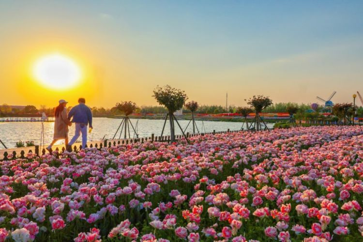 游览: 【荷兰花海】 : 荷兰花海位于江苏省盐城市大丰区北部的新丰镇 , 紧邻徐大高速 、 盐洛高速大丰北出口 。是国家 4A 级旅游景区 , 江苏省旅游风情小镇 ,江苏省智慧旅游和电子商务示范基地 , 盐城市生态组团的重要一级 。 荷兰花海深度挖掘 “ 民国村镇规划第一镇 ” 的历史底蕴 , 以 1919 年荷兰水利专家特莱克规划新丰农田水利为渊源 , 秉持 “ 立足盐城 、 承接上海 、 辐射长三角 ” 的功能定位 , 围绕地上长花 、 湖中生花 、 树上开花的整体规划 , 全力打造中国连片种植郁金香面积最大 、 种类最多的 “ 中国郁金香第一花海 ”。
