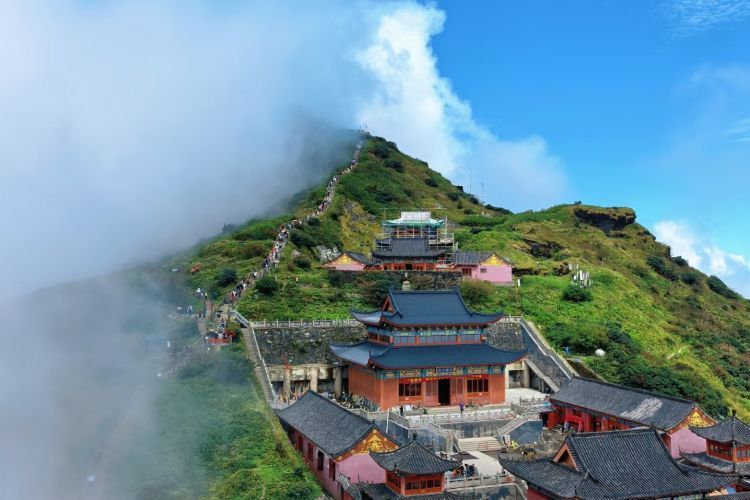 早餐后,乘车约1小时前往探访国“人与生物圈”保护网、国家级自然保护区,佛教名山、名岳之宗、弥勒道场—【梵净山】(不含索道140元/人+不含东门观光车 48元/人+景区保险10元/人;敬请自理!),经东线上山,游览原始森林爬金顶、攀登高达94米高的佛教胜地——金顶。亲临摩崖石刻、攀岩上铁链上灵宫台、穿挺心石、过慈航桥、拜观音石窟、穿越金刀 峡、上金顶。释迦殿拜[现在佛],过天仙桥、弥勒殿拜[未来佛],至海拔2336金顶顶峰,一览众山;往蘑菇石景区,观梵净山标志性景物——蘑菇石。巨大的天然氧吧,呼吸沁人心肺的新鲜空气, 远离人间,体验梵界梵天净土的那份神圣感觉。 游览结束后乘车约4小时前往贵阳酒店入住。