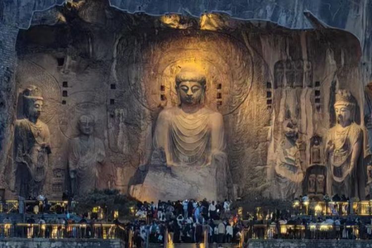 午餐后游览 5A 景区-世界文化遗产、中国佛教三大石窟艺术宝库之一、中国石窟艺术的“里程碑”一【龙门石窟】(门票90元/人已含,往返电瓶车20元/人已含,讲解耳麦20元/人已含,游览约2小时)。