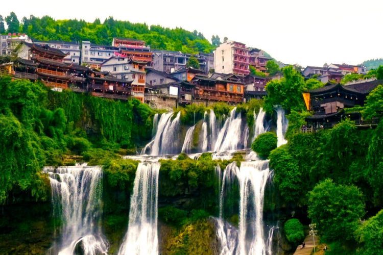 ---赴千年古镇--【芙蓉镇】(车程约2H)(门票已含,游览时间约1.5个小时)本名王村,是一个拥有两千多年历史的古镇,因宏伟瀑布穿梭其中,又称“挂在瀑布上的千年古镇”,因在此地拍摄电影《芙蓉镇》而闻名天下,景点有:王村瀑布,贞节牌坊,古老石板街等,可自费品尝刘晓庆米豆腐。