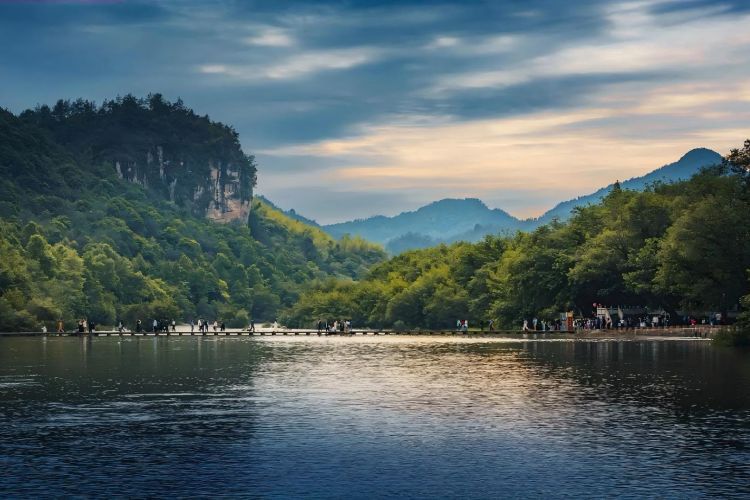 南明湖由开潭水电站蓄水而成,湖区水质清纯,四周山峦起伏,环湖具有丰富的历史