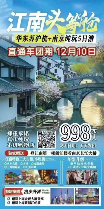 诗画江南华东苏沪杭+南京纯玩双汽5日游